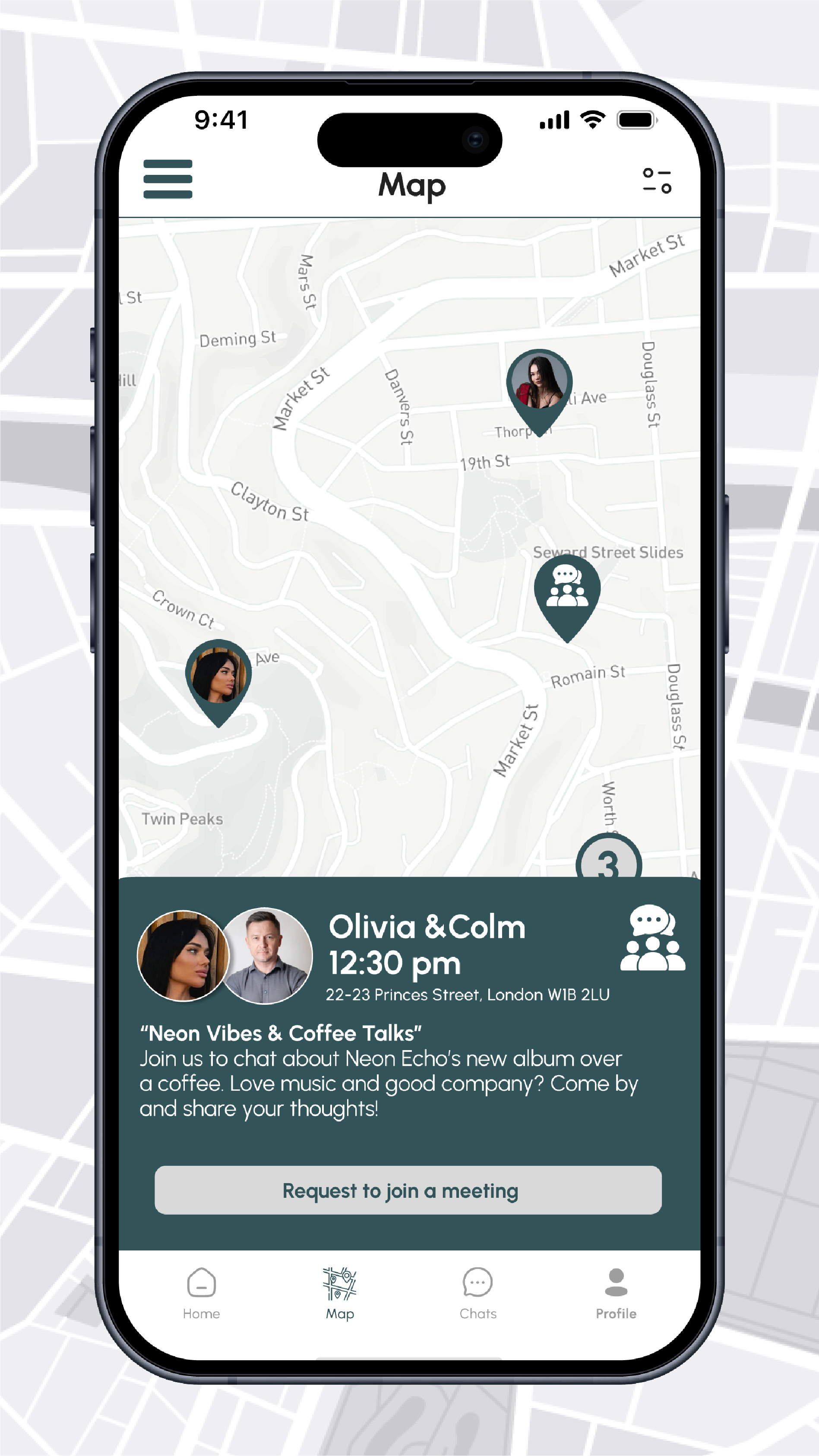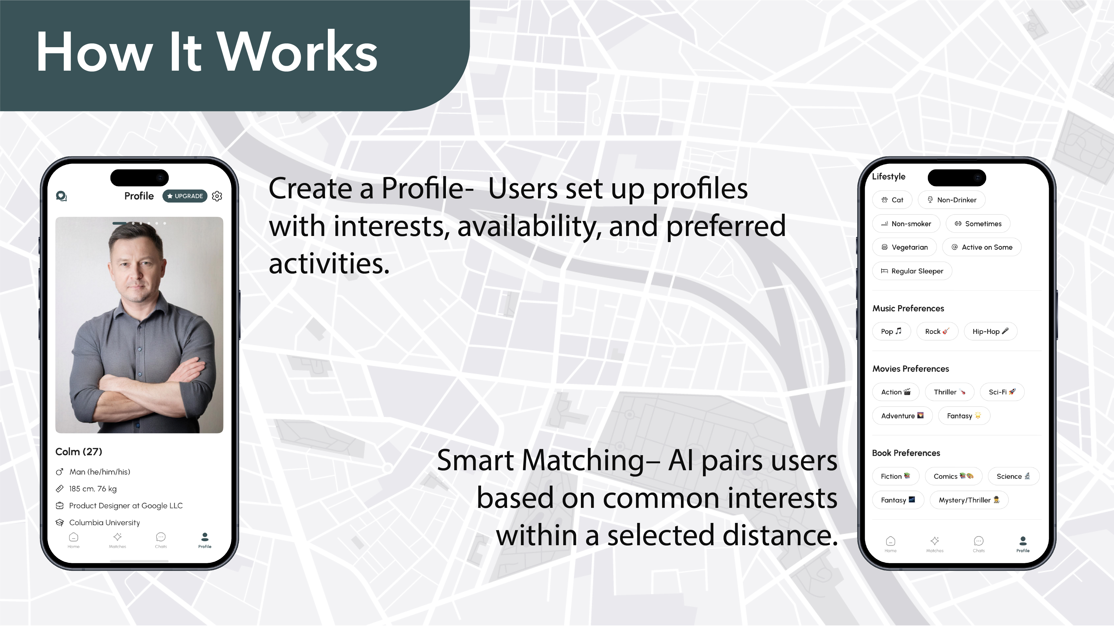 It's that simple , one click to find like minded people nearby. One connection to turn strangers into friends.