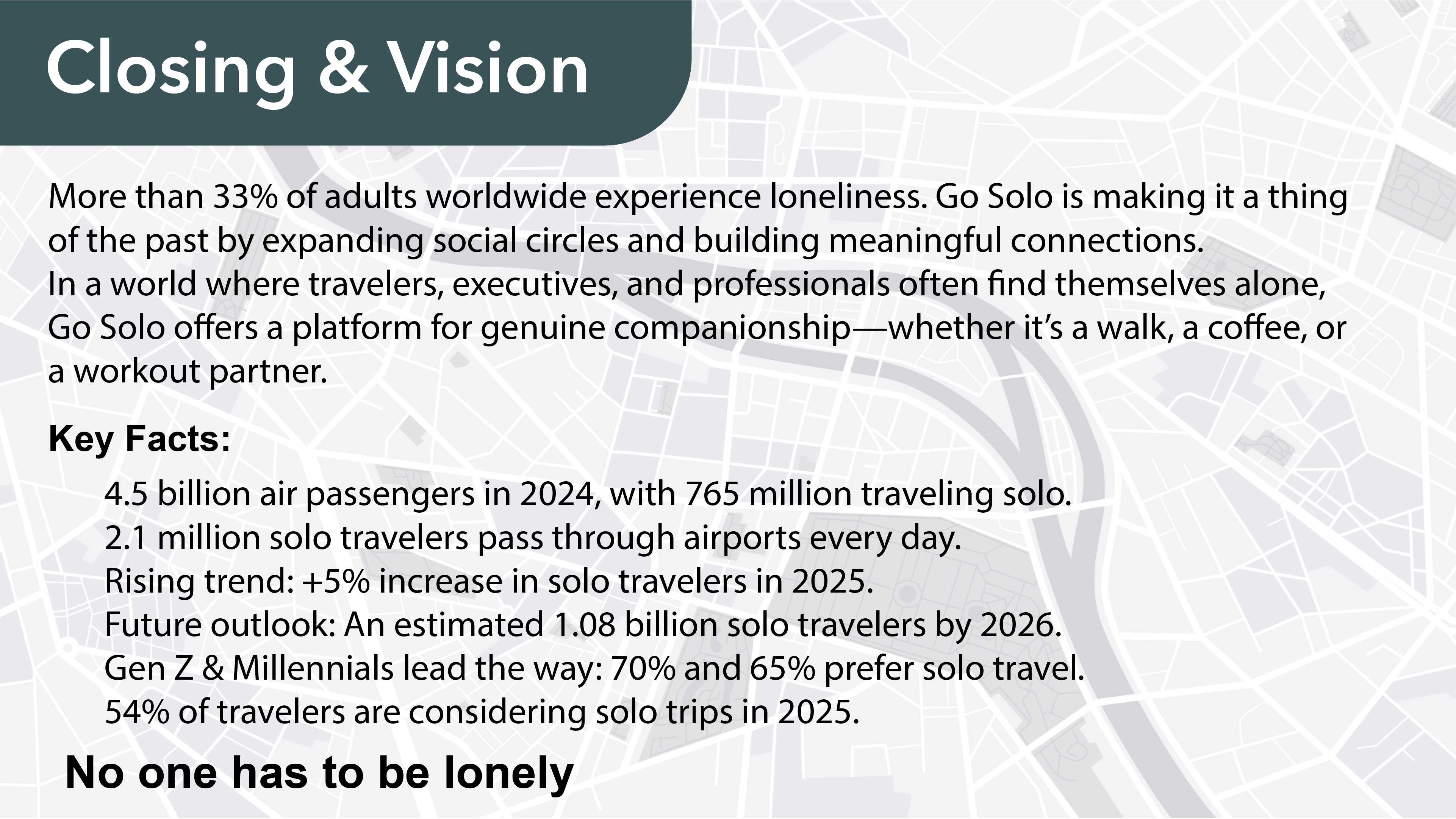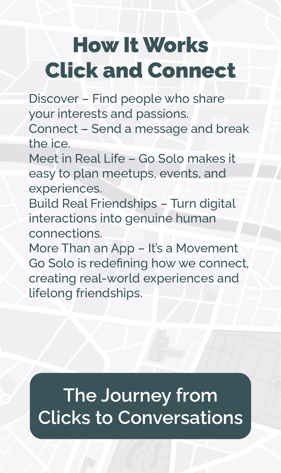 Whether you’re traveling for business, exploring a new city, or just looking to meet new people, Go Solo is your gateway to genuine companionship.