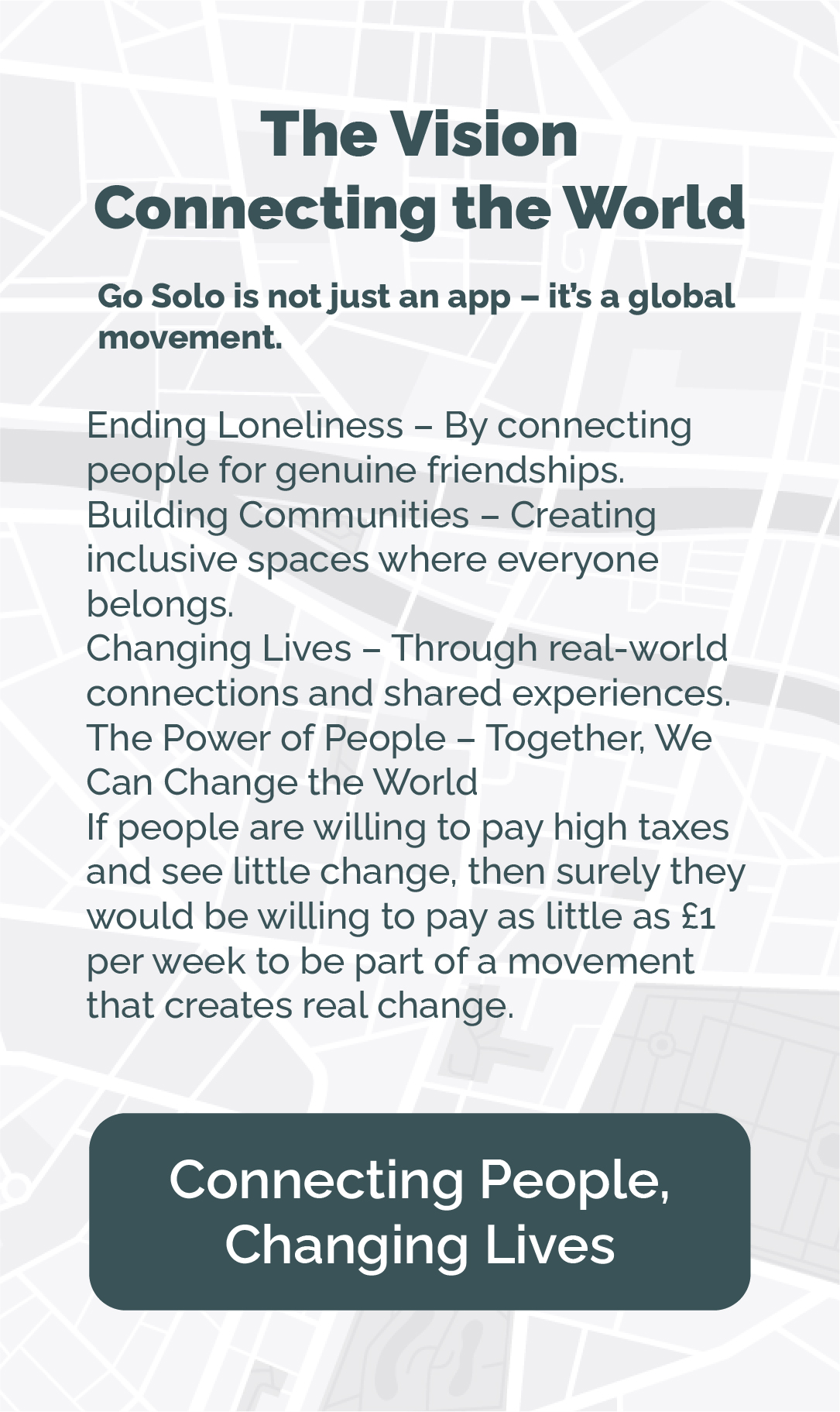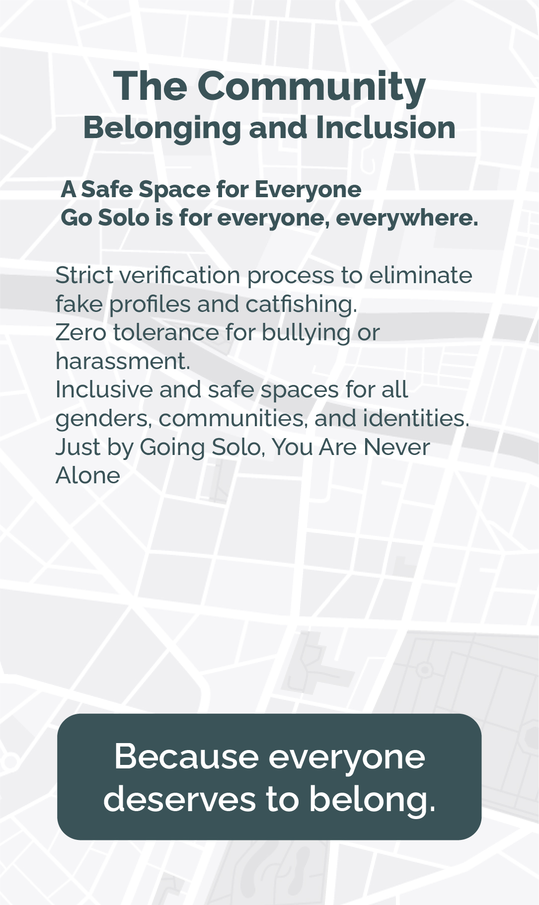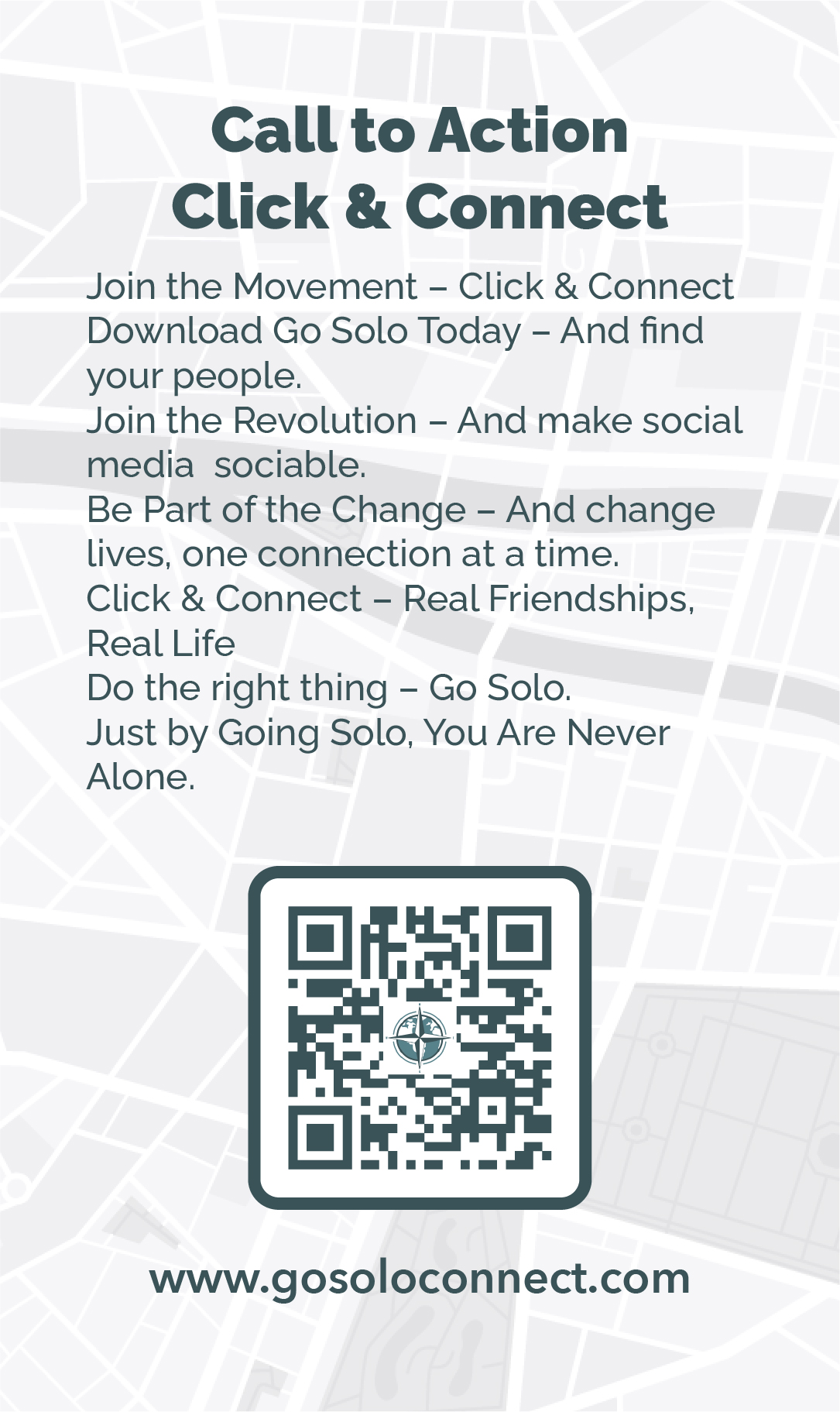 Don't do it alone, whether it's grabbing a coffee, exploring a new city or just taking a walk, Go Solo turns solo moments into unforgettable shared experiences. Click and connect ~ Real Friendships, Real Life.