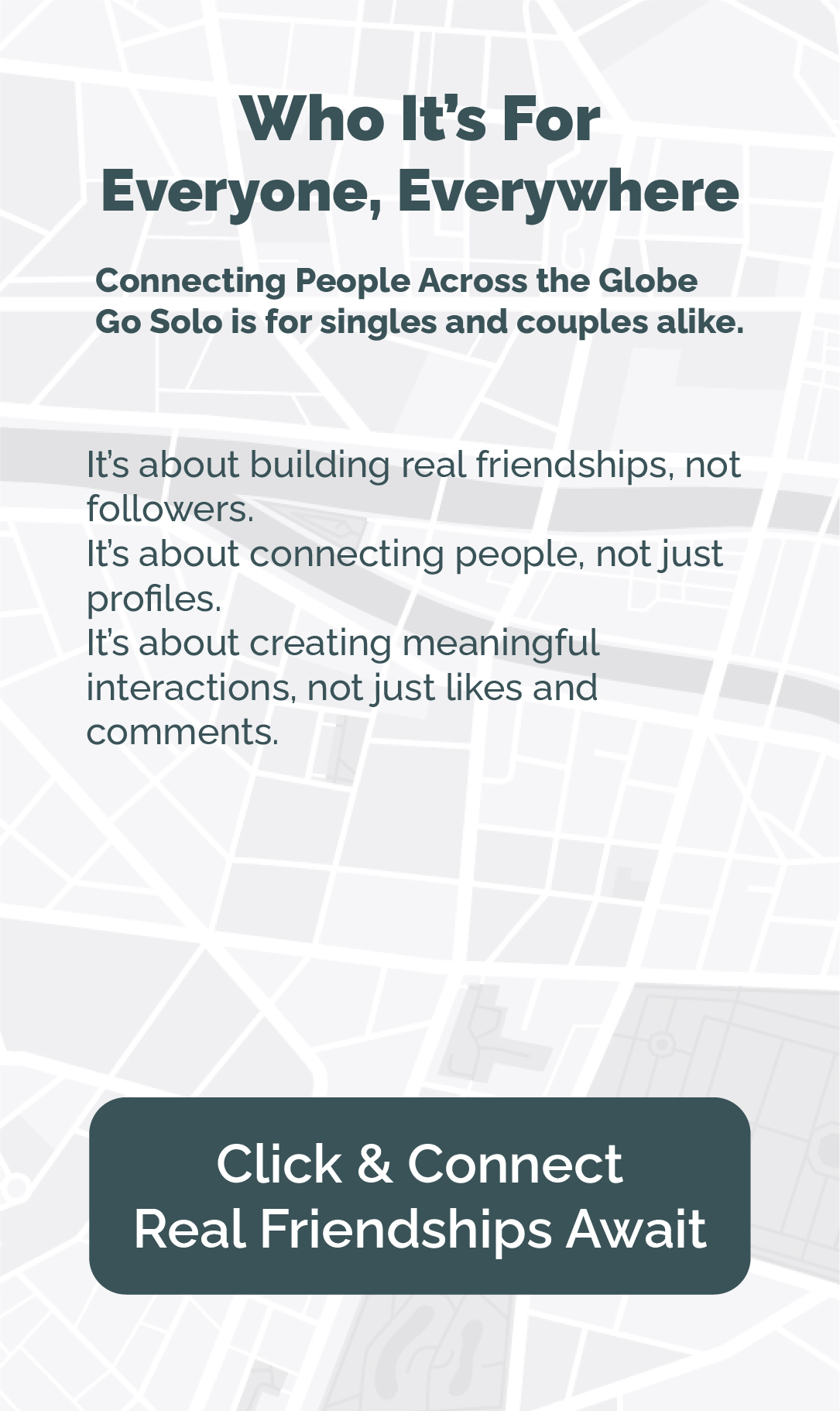 Meet genuine people, share meaningful experiences, and create memories that stand the test of time. With Go solo, connections aren't just made ~ they are built to last. Click and connect real friendships, Real Life!